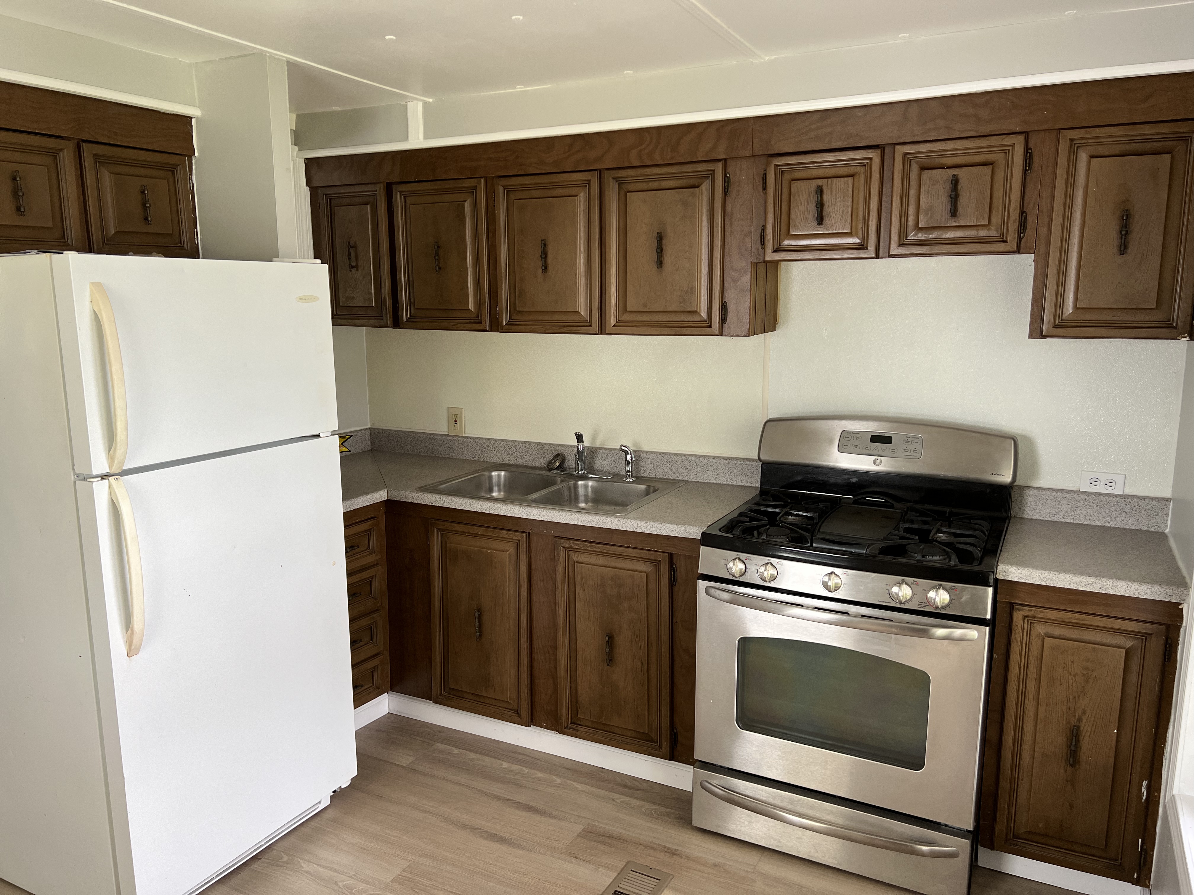Four bed, one and a half bath home with fenced yard.